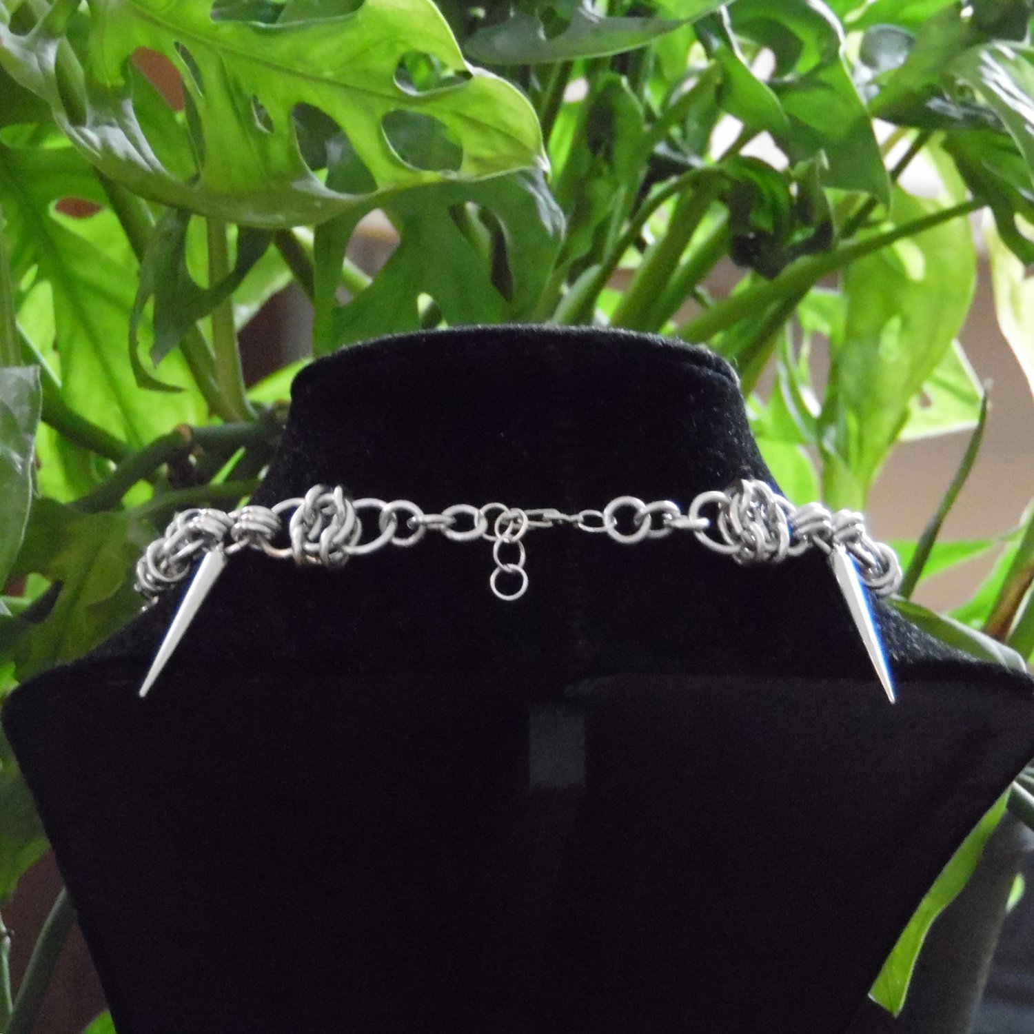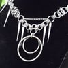 stainless steel spikes and chain, aluminum rings.